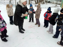 Ребята старшей группы, прогулки всегда ждут с нетерпением! Дети, не только любят играть в подвижные игры, любоваться природой, кормить птиц, но и познакомились с удивительным способом в нетрадиционной техники рисования: Цветной водой на снегу!
