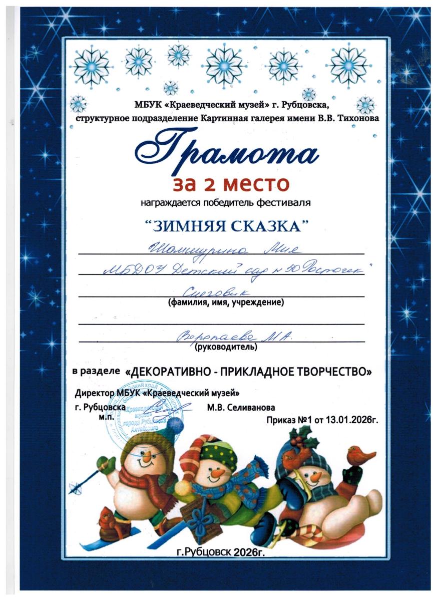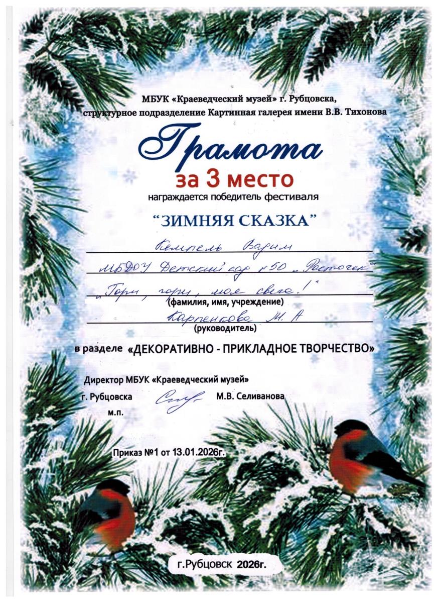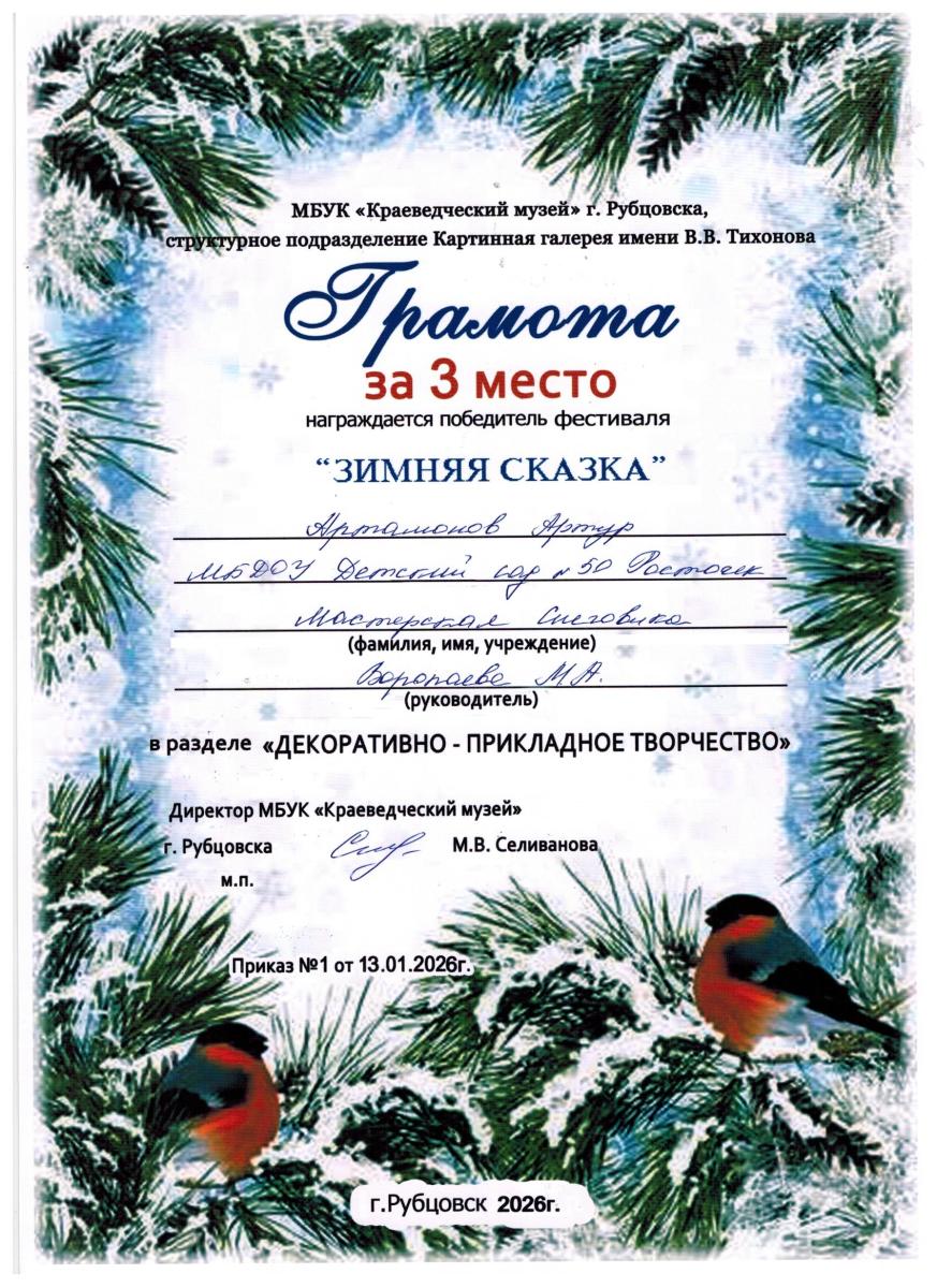 Итоги конкурса-фестиваля изобразительного и декоративно-прикладного творчества «Зимняя сказка», который проходил в городской картинной галерее имени В. В. Тихонова в Рубцовске