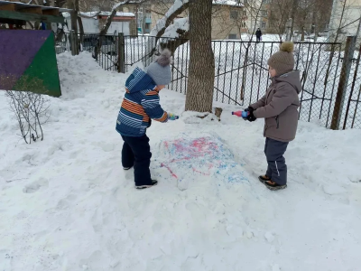 Ребята старшей группы, прогулки всегда ждут с нетерпением! Дети, не только любят играть в подвижные игры, любоваться природой, кормить птиц, но и познакомились с удивительным способом в нетрадиционной техники рисования: Цветной водой на снегу!