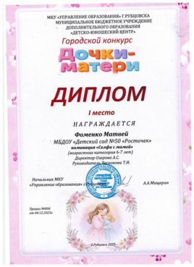 В ноябре 2025 года в МБУ ДО «ДЮЦ» проходил ставший уже традиционным городской конкурс «Дочки-матери», в котором участвовали воспитанники нашего дошкольного учреждения, в номинации «Селфи с мамой».